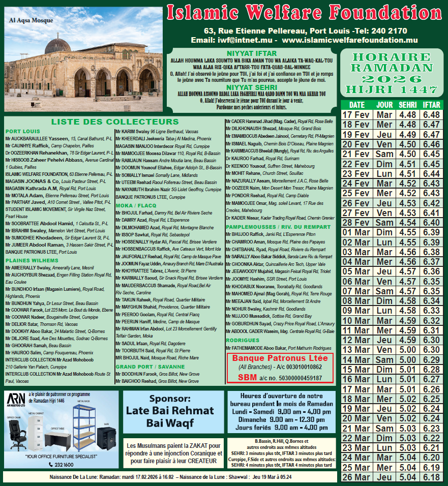 19 Feb 2026Ramadaan Horaire Ramadaan 2026/ Hijri 1447 Click on the title to view Horaire Ramadan Calendar for Year 2026 / Hijri 1447: 1447hijri, 2026, hijri, horaire, Ramadan